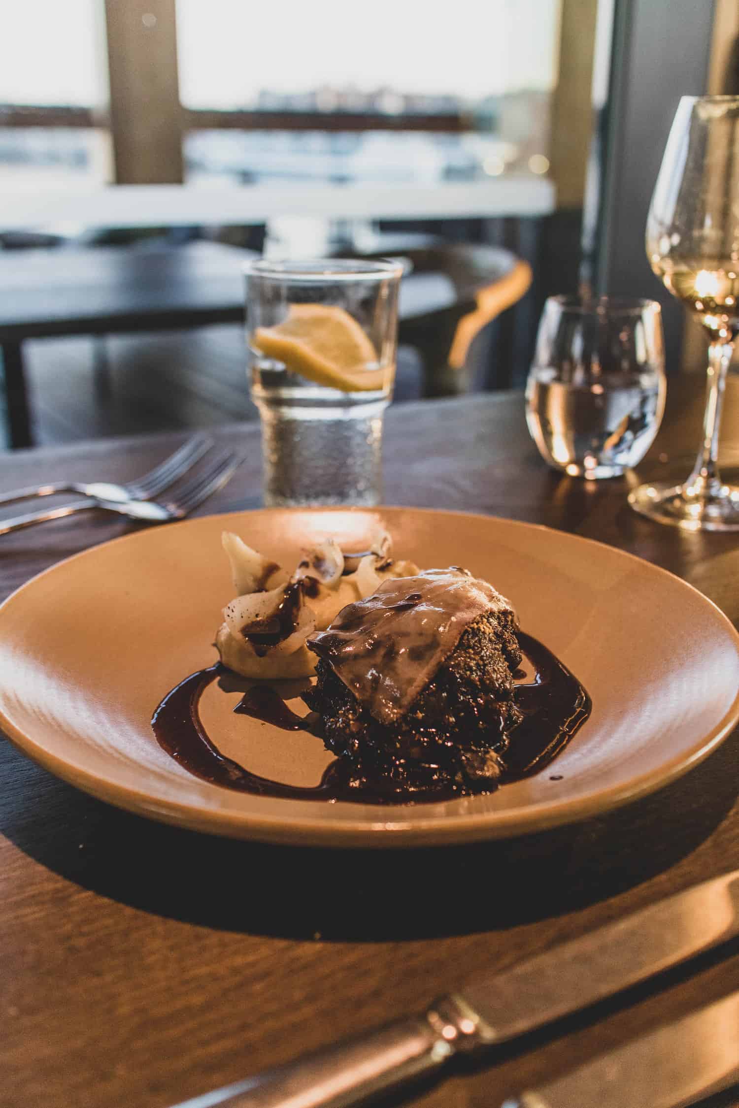 Allas Wine & Dine is the renewed restaurant on the second floor, that is a completely revamped version, with a menu full of delicious Nordic flavours and creations and can make for an absolutely wonderful experience in this unique space. My favourites to start with were the vegan celery tacos (I can’t wait to go back for these!) and the venison tartar, which both made me really happy.For the main course we chose the fish of the day and a slow-cooked beef dish. Fresh and light flavours perfect for a summery day, alongside a glass of a crisp Riesling.