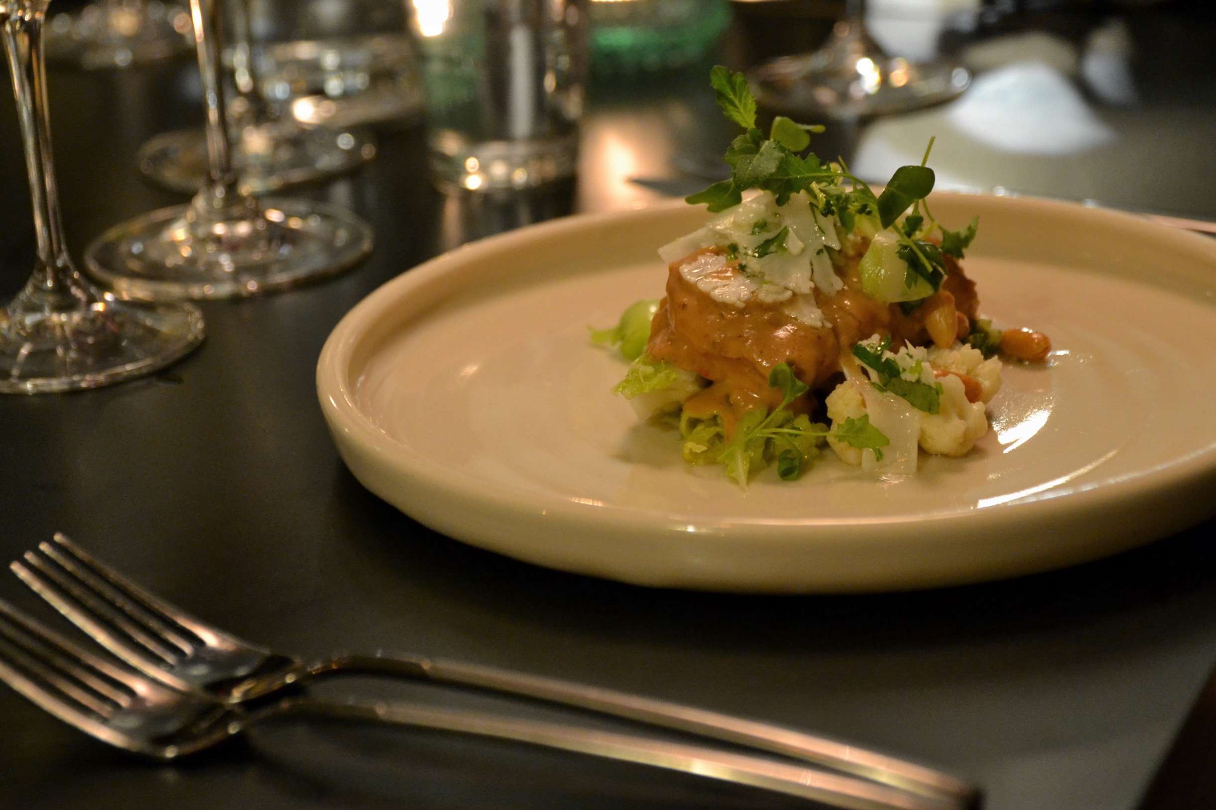 Despite not really being a fan of peanut-based sauces, the fried pike-perch in satay saucy that was served as (the first) main course, was very enjoyable. I probably wouldn’t have ordered this myself given a choice, but this is exactly how you are surprised sometimes. The wine pairings for the evening were absolutely exquisite, especially the German Riesling that was recommended is something I could definitely have a couple of bottles at home of.