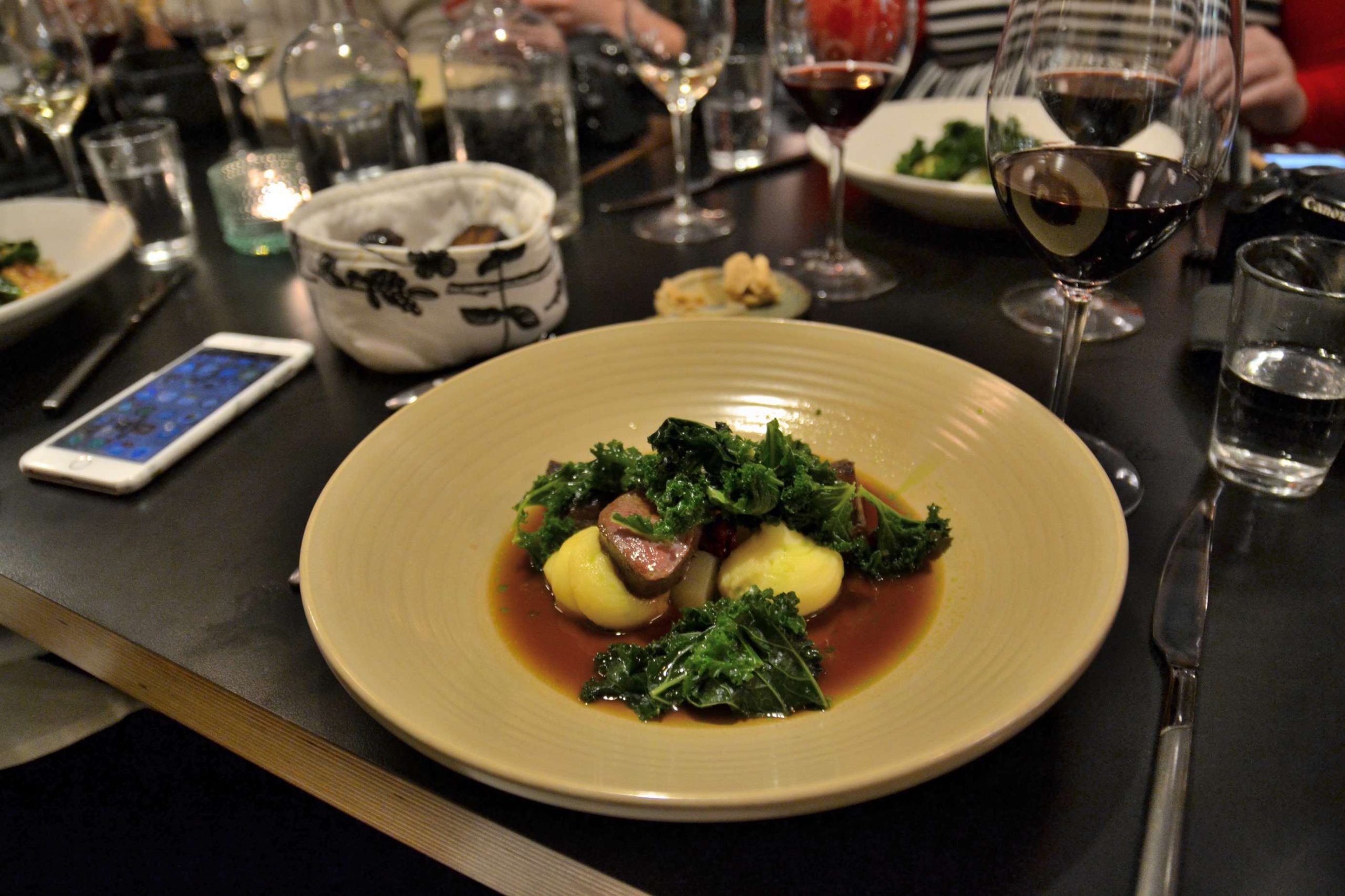 The reindeer which was the second main course. Yes. I’m struggling to find words to describe how divine this was. Rarely in my life have I seen a group of people in such awe over food, and sadly I also don’t feel like the photos do it justice. It was served with some kale and creamy potatoes, and even before I started eating I knew I was going to be really sad when it was over. Absolutely beautiful, tender and full of flavour, this is definitely something you’d have to try to believe it.