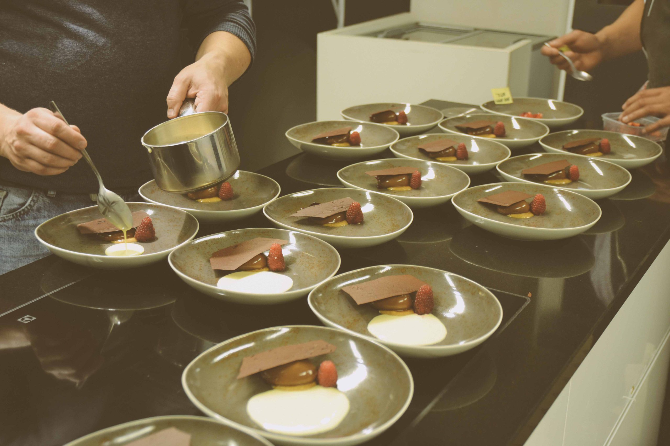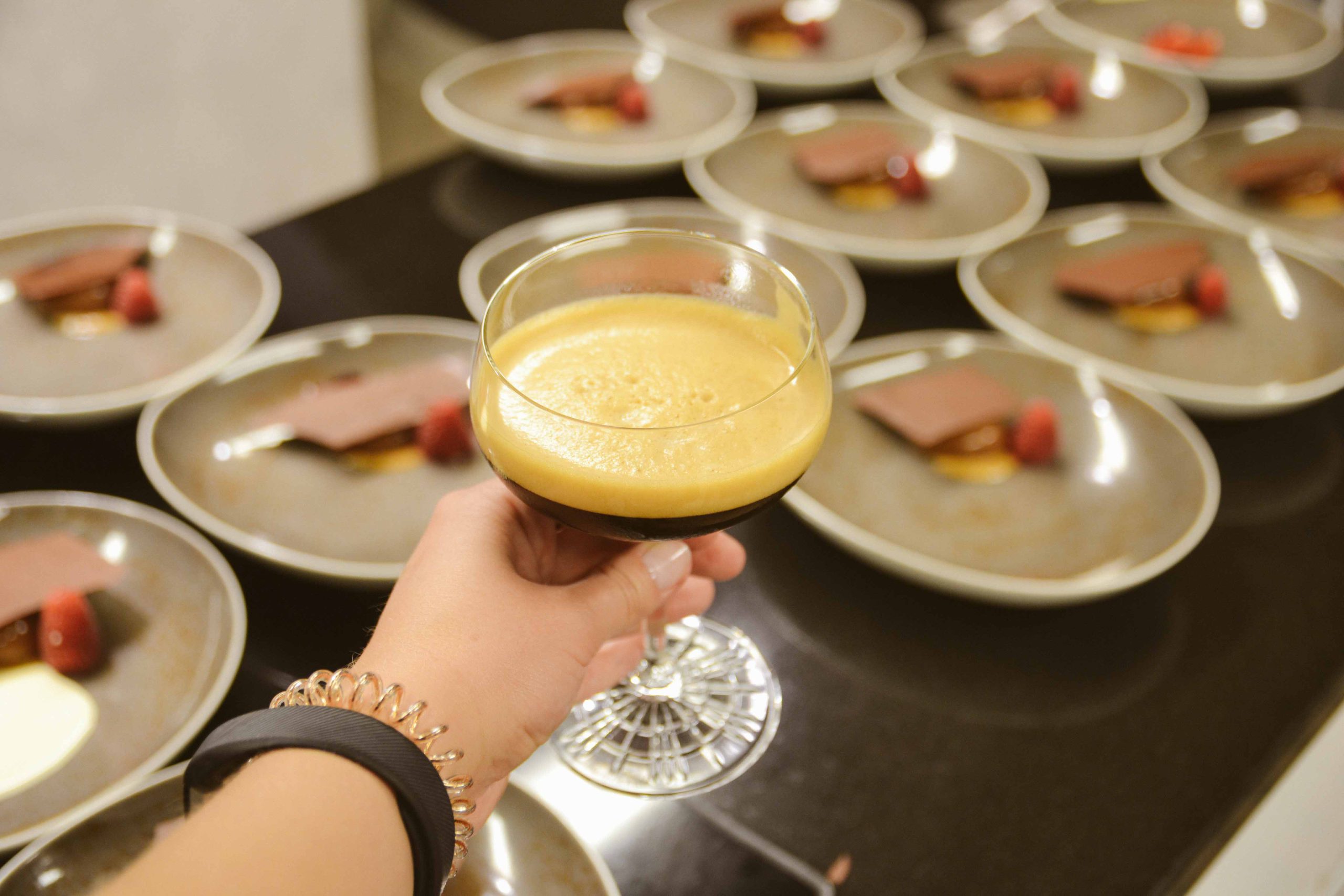 For the dessert, we moved up into Olo’s Creative Kitchen. This open kitchen space invites smaller parties to engage in a more social dinner setting, where you get the chance to cook with the chefs, or just observe. Bartender Paula mixed up an excellent espresso martini, while head chef Kim Mustonen got our desserts ready. This milk chocolate ganache with almonds and salt caramel, raspberry jelly, chocolate crackers and lemongrass-flavoured crème anglaise was just the perfect finale to an evening of spectacular food and good conversations.