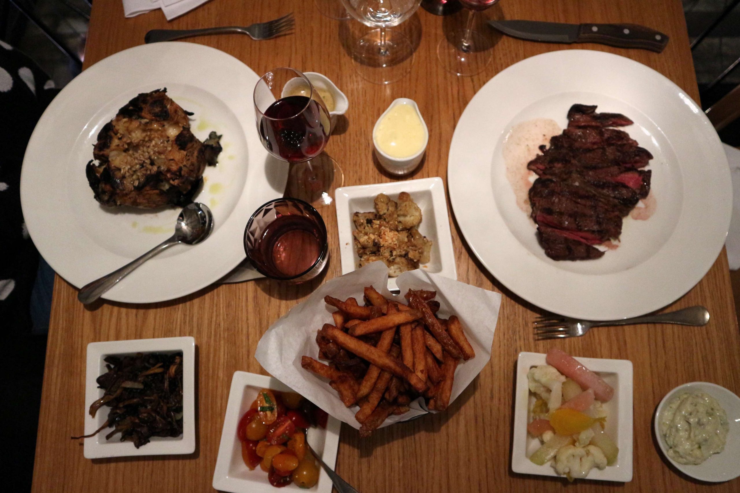 To my delight we got started with a proper Kir Royale, which back home in Luxembourg is a go-to drink for me, up here in the North it’s a rare treat. As we got an introduction to the menu, it shows nicely how Huber wants to encourage the concept of sharing, by offering the meat by the kilo price, along with a wide variety of side dishes, that are intended to be for the whole table.