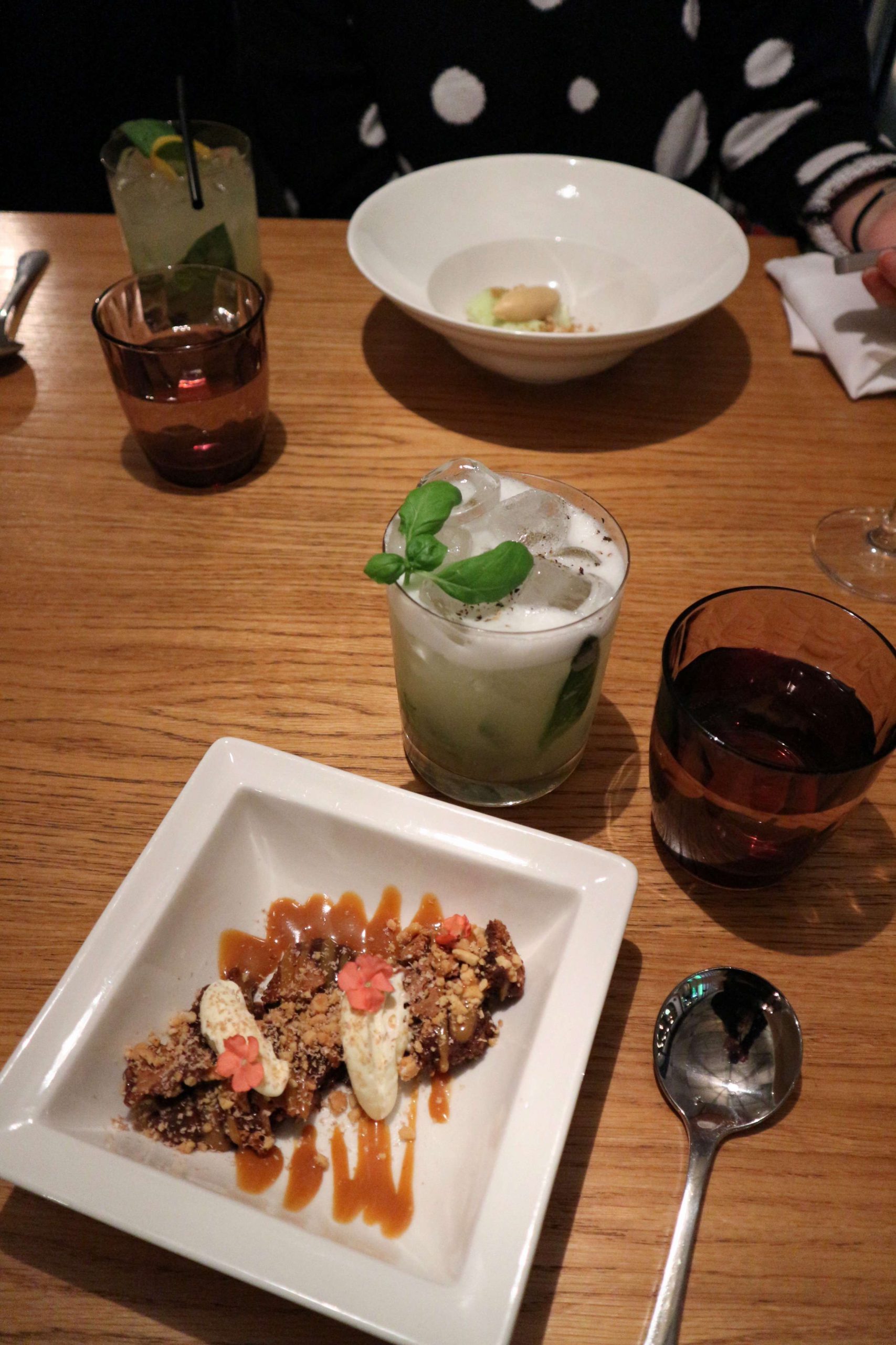 Having skipped on the wine offer during the main course, we decided to finish off the evening with a cocktail along our dessert instead. Also here, the alcohol-free version could easily keep up with my Basil sour, that was just the refreshing ending to our evening. The Nutella brownie dessert however, this left both of us speechless with wide open eyes for a minute, because this was incredible. If you have to decide on starter or dessert – go for this one – and be amazed.