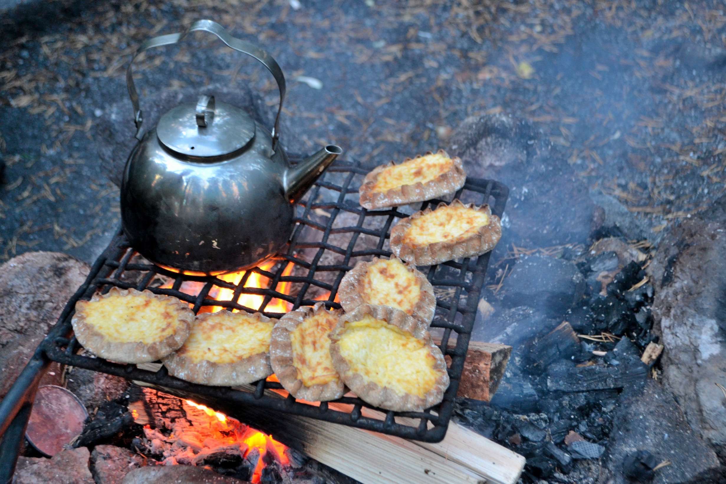 Teilweise regnete es in Strömen, später leuchtete der Wald wieder; die Regentropfen glitzerten im Sonnenlicht und es war egal, dass wir alle nass waren. Ich hätte gerne mehr Zeit gehabt um mehr Beeren zu sammeln (=größerer Kuchen) und bei dem Lagerfeuer am See zu sitzen. Zum Aufwärmen und Stärken gab es Kaffee und Karelische Piroggen, als Belohnung für unseren Fleiß. Der Ausflug dauerte gut drei Stunden, glücklicherweise war unsere Gruppe zeitlich flexibel und wir konnen uns doch relativ viel Zeit lassen, dennoch war es schon dunkel als wir uns auf den Rückweg zum Auto machten.